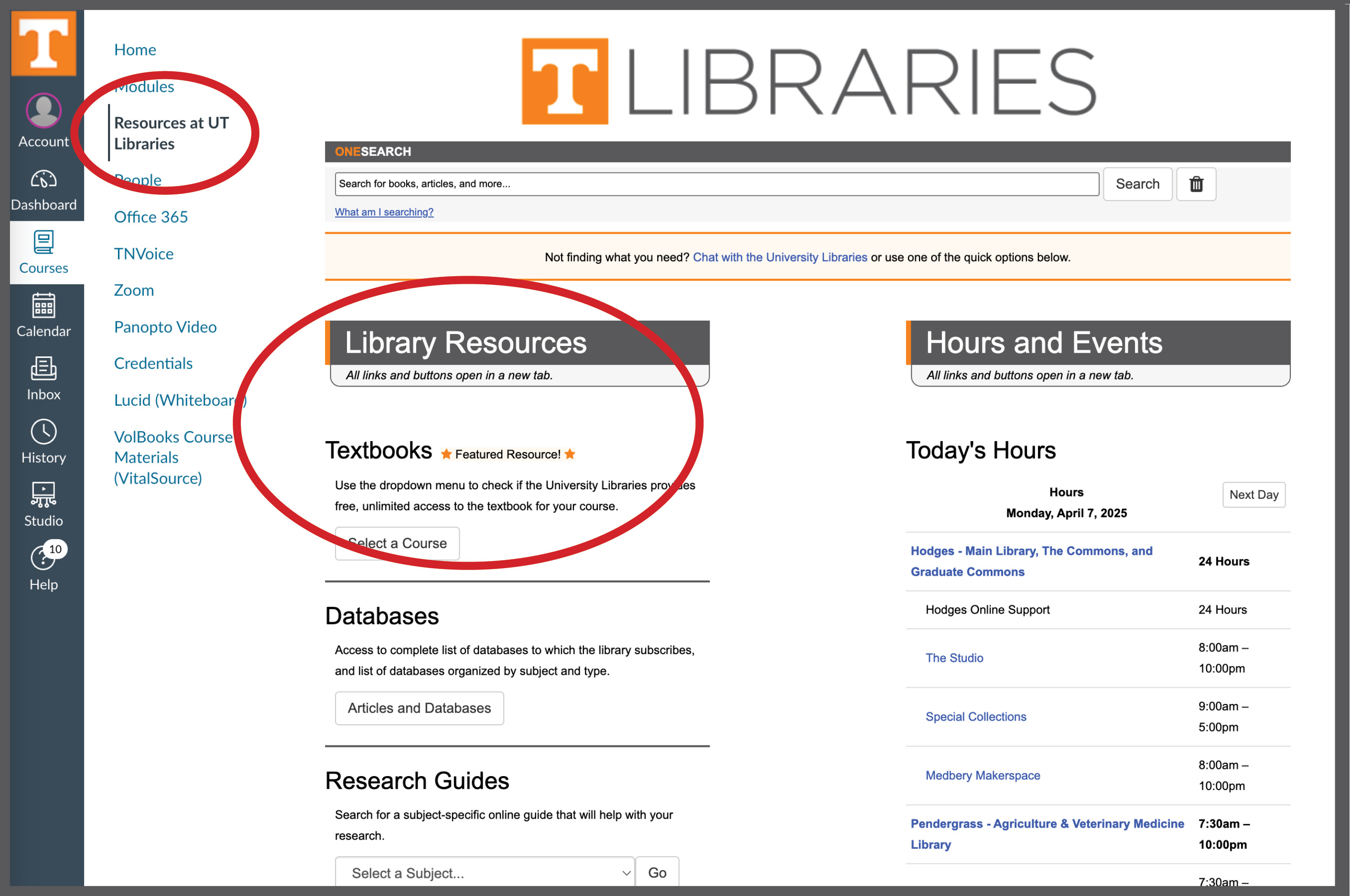 Many library services and resources are accessible directly from Canvas, the learning management portal through which students can access course materials and submit assignments. UT Libraries also has partnered with the VolShop to provide students with affordable course materials at the lowest possible price.