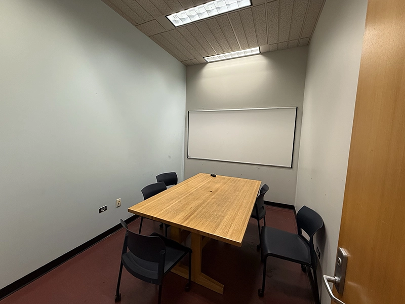 The Miles Reading Room features three enclosed study rooms. These rooms are more private than the study rooms in the Commons, but still have windows.